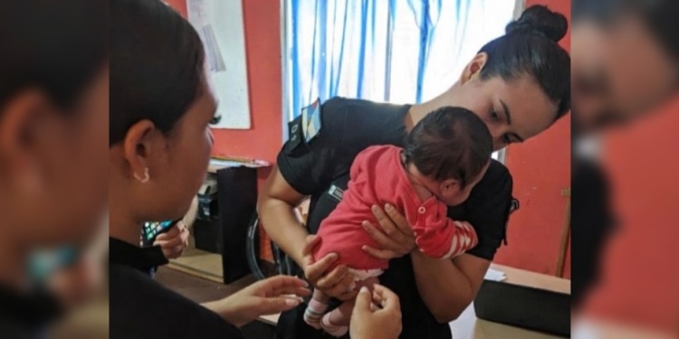 Este martes una situación traumática terminó con un final feliz, merced a la rápida reacción del personal policial en San Pedro, donde una beba logró ser asistida a tiempo cuando se estaba ahogando; la pequeña solo tiene un mes de vida.