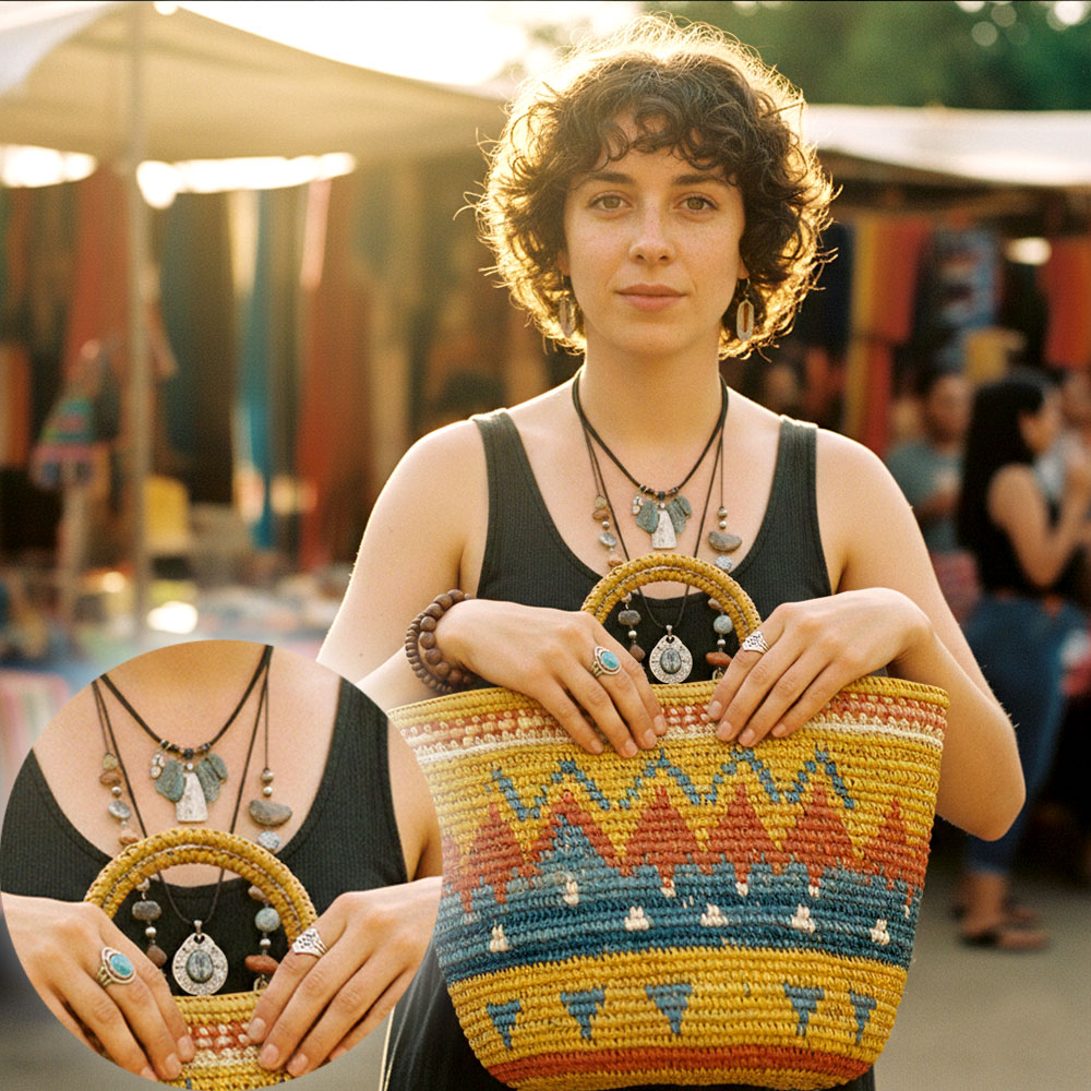 Este verano, los accesorios son más que adornos; son portadores de significado. Bolsos de mimbre tejidos a mano, sombreros de paja con diseños únicos, joyas de artesanos locales que utilizan materiales reciclados o técnicas ancestrales.