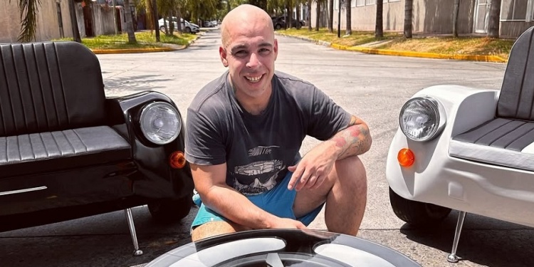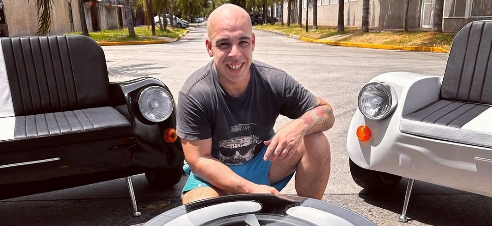 Jonatan Ramírez tiene 37 años y es hijo de madre misionera, que reside en Oasis, muy cerca de l localidad de Jardín América. Desde hace casi una década, es el creador de “Custom Jarmar”, así bautizó a su emprendimiento, crea sillones de una y dos plazas en forma artesanal con autopartes de Fiat 600, que atrapan a propietarios de casas de tatuajes, pizzerías, salones de uñas, productoras de teatro y cervecerías, además de personas particulares.