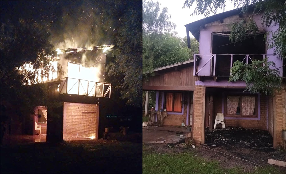 Mientras se recepcionaban las denuncias y se activaban los protocolos correspondientes, la Policía se trasladó al domicilio, donde constató una situación aún más grave: la vivienda se encontraba parcialmente incendiada. La intervención de Bomberos de la Policía y Bomberos Voluntarios de Oberá permitió controlar y extinguir el fuego, evitando que se propagara a casas vecinas.