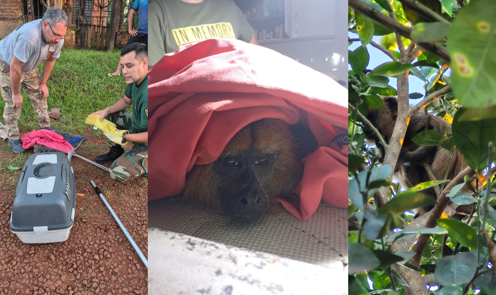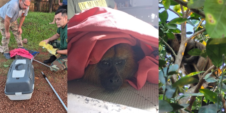 Un ejemplar de mono carayá fue rescatado y resguardado por personal especializado luego de ser perseguido y mordido por perros en Garupá.