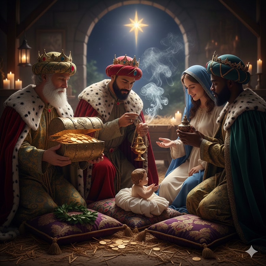 Los Reyes Magos eran sabios de Oriente que siguieron una estrella para adorar a Jesús.