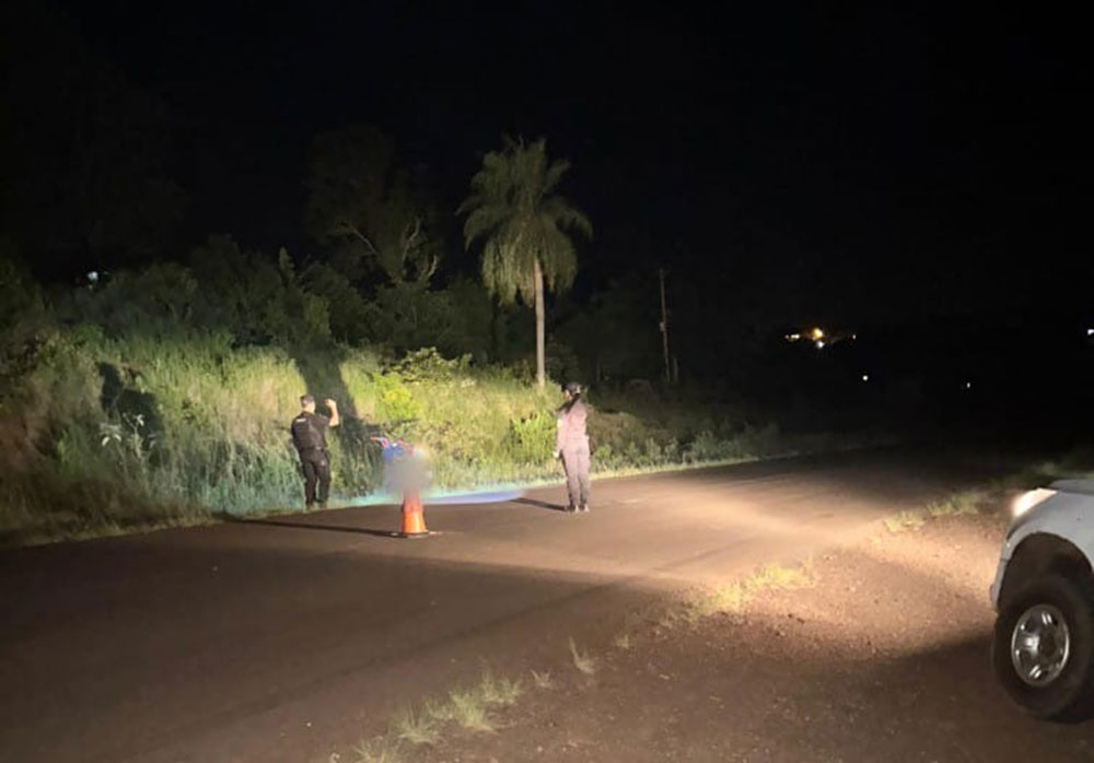 Según informaron fuentes policiales, una motocicleta Honda New Titán, que circulaba en sentido Dos Hermanas–Pozo Azul, impactó contra el perro que se encontraba sobre la calzada, provocando la caída del conductor.