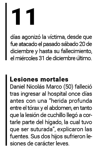 El profesional también está imputado por lesiones leves, ya que los dos hijos de Marco, de 24 y 25 años, también sufrieron cortes en los antebrazos tras el confuso episodio, consignó un vocero.