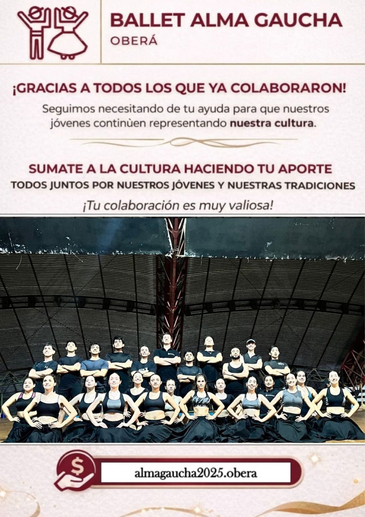 Quienes deseen colaborar pueden hacerlo a través del alias almagaucha2025.obera, donde se reciben donaciones destinadas a solventar el viaje de toda la delegación.