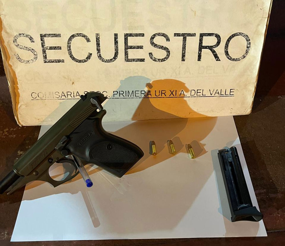 Tras dialogar con la mujer, esta autorizó de manera voluntaria la requisa del vehículo, indicando el lugar donde se encontraba oculto el arma. Durante la inspección, los efectivos hallaron debajo de la alfombra del habitáculo una pistola calibre .22, marca Bersa Thunder, con tres cartuchos sin percutar en su cargador, procediéndose a su secuestro.