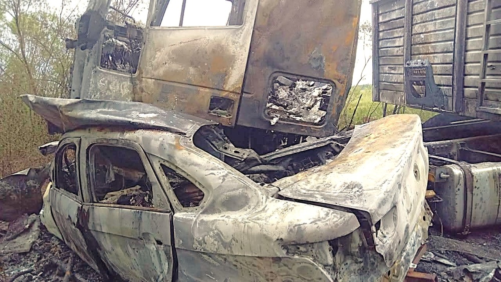 Una pareja oriunda de la localidad de San Vicente murió calcinada tras chocar en forma frontal contra un camión con contenedor, a las 10 del viernes, sobre la ruta nacional 14, altura del kilómetro 793.