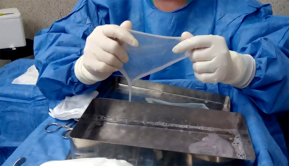 “Estamos rescatando un promedio de dos placentas por semana. El procesamiento se hace en nuestro laboratorio, donde tenemos un equipo de instrumentadores quirúrgicos, una farmacéutica, biólogos, técnicos, bioquímicos y médicos. Pero el trabajo clave es del instrumentador quirúrgico que separa una de las capas de la placenta, la membrana amniótica, que tiene la apariencia de un film, es una membrana muy dócil, a la que hay que trabajar con mucho cuidado para que no se rompa. La placenta llega sanguinolenta y cuando llega al banco pasa por un proceso de lavado, se pasa por un cóctel de antibióticos para poder dejar la membrana en condiciones estériles”, precisó.