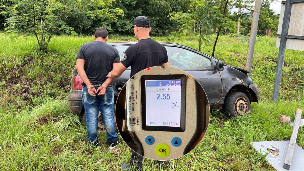 En el lugar trabajó personal de la División Seguridad Vial y Turismo, que procedió a realizar el test de alcoholemia al conductor, el cual arrojó un resultado positivo de 2,55 gramos de alcohol por litro de sangre.
