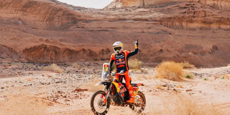 El piloto argentino de 30 años, a bordo de su KTM oficial, dominó un exigente recorrido de 483 kilómetros cronometrados y 238 de enlace, pese a la dificultad de abrir pista, y ahora manda en la general con apenas 10 segundos de ventaja sobre el australiano Daniel Sanders-