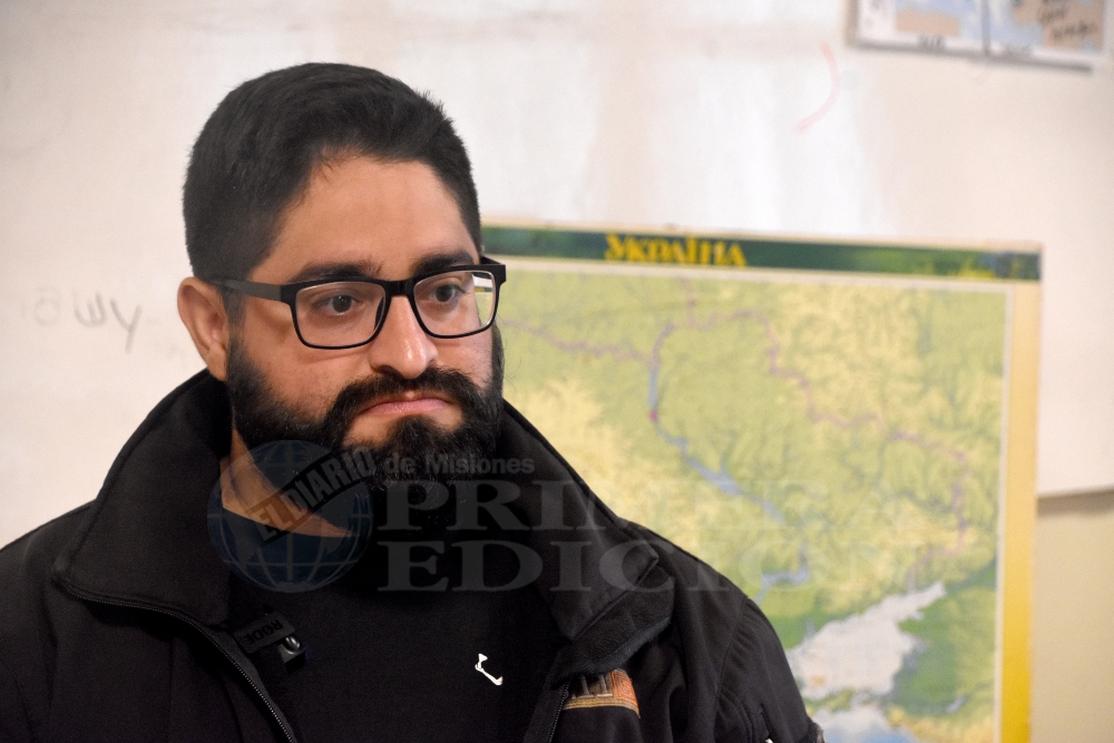Ezequiel Montero Benítez (34) es explosivista y fue convocado a dar clases de geografía para los alumnos del primero de cuatro niveles, que asisten al curso. También tuvo a su cargo la charla para graficar la invasión rusa a Ucrania. Manifestó que viajó para “trabajar en la invasión a gran escala, en lo que conocemos como guerra de Ucrania, porque tengo amigos del Ejército Argentino que fueron a pelear por esta ‘causa justa y santa del pueblo ucraniano’. Cuando llegaron, vieron que faltaban explosivistas, me invitaron y estuve tres meses desminando, demoliendo y formando a explosivistas ucranianos”. Su tarea se desarrolló en Kyiv, la capital. También “en el Sur, en la zona de Mykolaiv y Jersón; en el Noreste, en Járkov y en Kramatorsk y alrededores, Limán, Izium y pasando un poquito Pokrovsk, que ahora está rodeada por los rusos”.