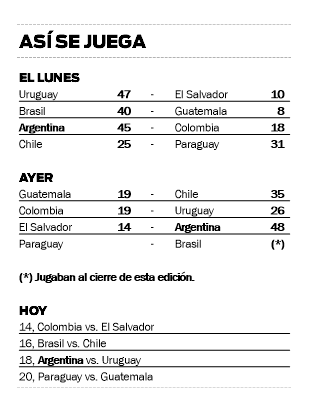 Por el Grupo B, Chile venció a Guatemala por 35 a 19 este martes y se recuperó de la caída ante Paraguay en el debut por 31 a 25.