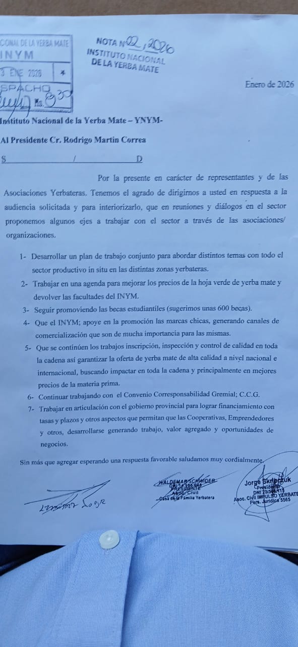 El pedido de audiencia había sido presentado el 29 de diciembre ante el Directorio del INYM, pocos días después de la asunción de Correa como presidente del organismo, luego de más de dos años de acefalía institucional. En esa nota, las asociaciones solicitaban un espacio de diálogo para exponer inquietudes, propuestas y preocupaciones frente al impacto de la desregulación, la caída del precio de la hoja verde y la eliminación de facultades regulatorias del Instituto.