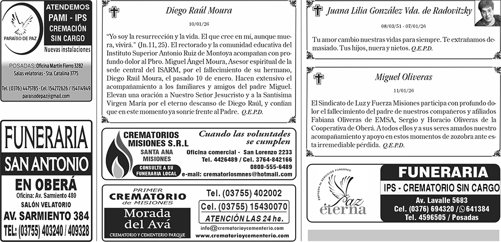 Fúnebres 15-01-2026