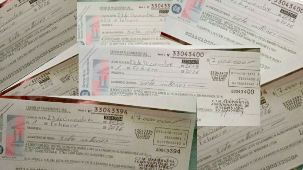 • Alertan por estafas con cheques falsos a nombre de la Cooperativa Agroindustrial de Misiones