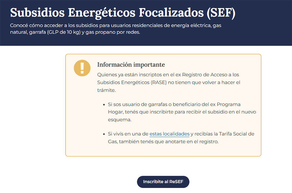 El ReSEF se conforma a partir de la información ya existente en el Registro de Acceso a los Subsidios a la Energía (RASE), por lo que los usuarios que ya estaban inscriptos no deberán volver a anotarse. Sin embargo, el nuevo sistema habilita y promueve la actualización de datos, un paso clave para definir la continuidad del beneficio.