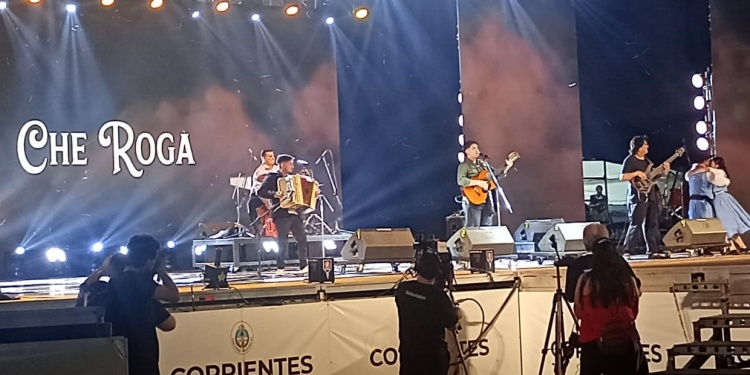 En la segunda noche de la Fiesta Nacional del Chamamé, los misioneros Che Rogá tuvieron una destacada actuación, ofreciendo un amplio repertorio de música regional que hizo bailar al público.