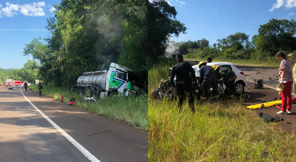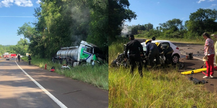 Un hombre de 41 años falleció este domingo en Cerro Azul luego de un violento choque entre un transporte de carga con soda cáustica líquida y un auto que conducía la víctima fatal sobre la ruta nacional 14.