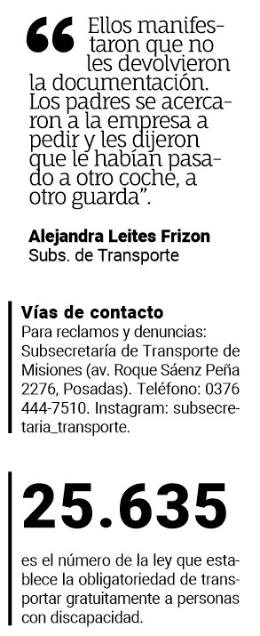 En el caso tomó intervención la Subsecretaría de Transporte de Misiones y su directora general, Alejandra Leites Frizon, fue quien confirmó a este medio que los jóvenes aún no recuperaron sus documentos de identidad, hecho por el que ya se radicó una denuncia. El resto de la documentación (que incluye carnet de transporte y Certificado Único de Discapacidad) fue restituida por gestiones de esa subsecretaría.