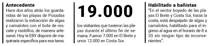 A diferencia de los camalotes, que flotan a la deriva, “estas algas presentan un desafío mayor por su densidad y anclaje. En el sector costero se está realizando un retiro de manera artesanal, mediante el uso de piraguas pero en las zonas de mayor profundidad la tarea se vuelve mucho más compleja. Por ese motivo, desde el municipio se están coordinando acciones con la Entidad Binacional Yacyretá (EBY) con el propósito de que intervengan con maquinaria específica, que disponen”.