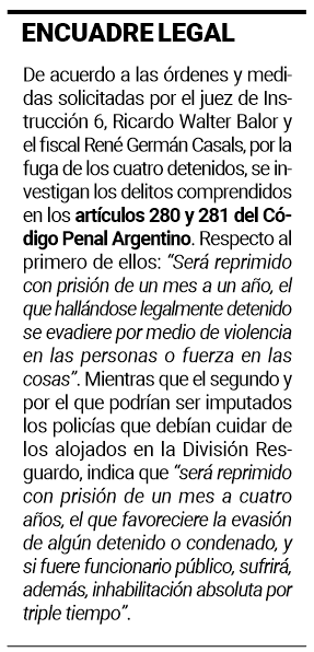 Los suboficiales que fueron puestos en disponibilidad poco después de haberse descubierto la evasión de los cuatro detenidos, informaron ayer al Juzgado de Instrucción 6 que el superior y responsable mayor del área de detención fue comunicado de la intención de escapar y que solicitaron que se realizara una requisa en toda la división para frustrar el plan.