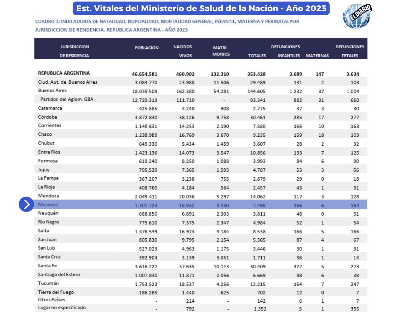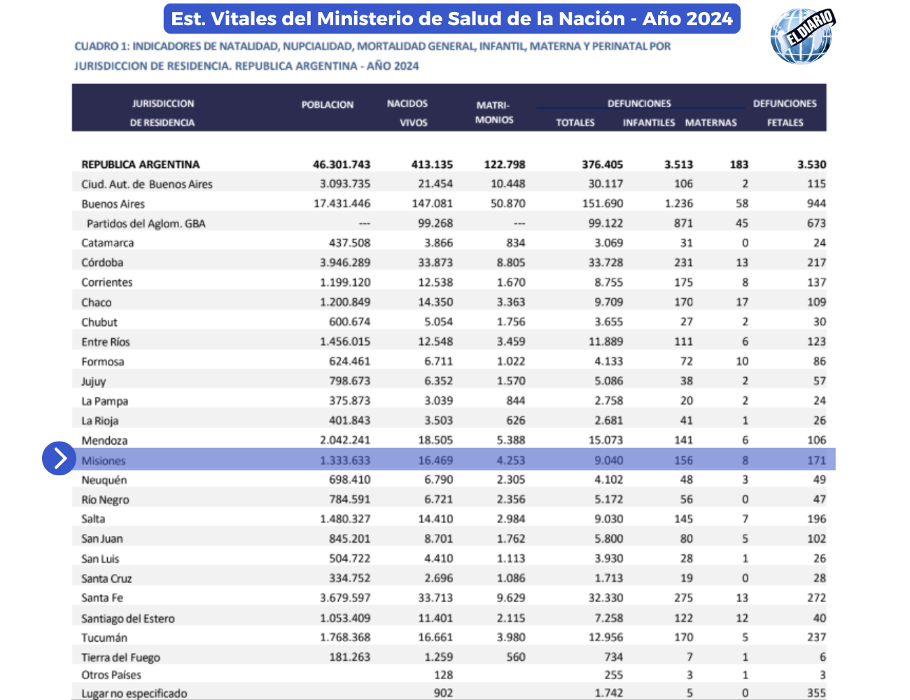 Los datos oficiales también muestran que Misiones se encuentra entre las provincias con el incremento más pronunciado de la mortalidad infantil durante 2024. La tasa pasó de 5,8 muertes cada 1.000 nacidos vivos en 2023 a 9,5 en 2024, lo que representa una suba de 3,7 puntos.