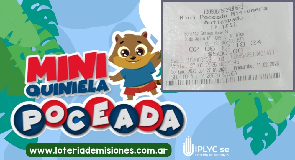 El pasado martes, la fortuna pasó dos veces por la localidad de Leandro N. Alem y fue gracias a los sorteos de la Mini Poceada. Primero salió el pozo histórico del juego misionero con un premio mayor a los 53 millones de pesos, y unas horas después, el juego del Instituto Provincial de Loterías y Casinos (IPLyC) volvió a salir y llevó alegría a un empleado de esa ciudad.