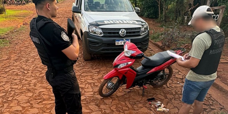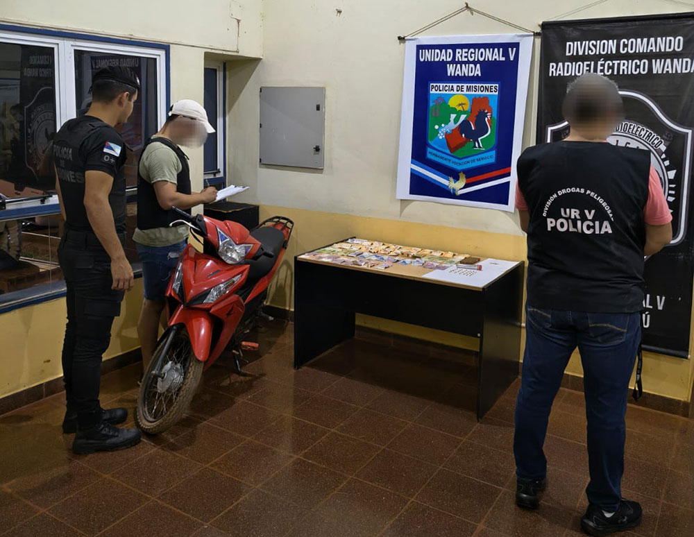 Un operativo policial realizado el lunes por la tarde en el barrio Unión de la localidad de Wanda terminó con la demora de un adolescente de 17 años, el secuestro de cocaína lista para la venta y la incautación de una motocicleta robada.