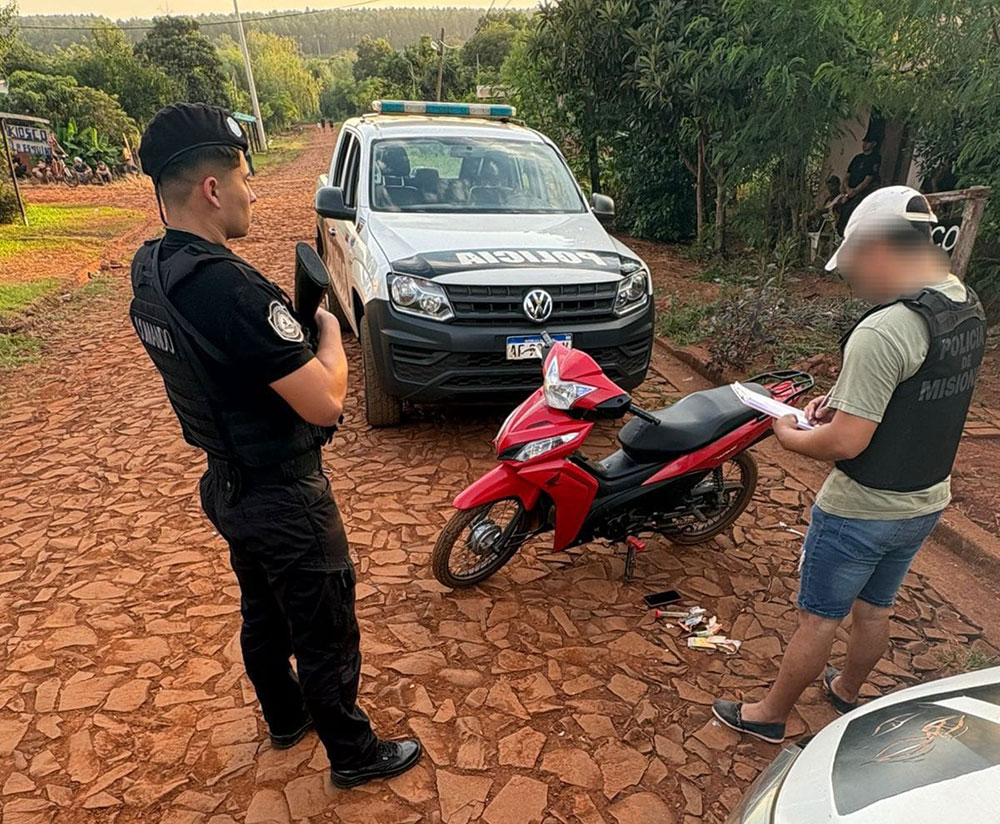 Un operativo policial realizado el lunes por la tarde en el barrio Unión de la localidad de Wanda terminó con la demora de un adolescente de 17 años, el secuestro de cocaína lista para la venta y la incautación de una motocicleta robada.