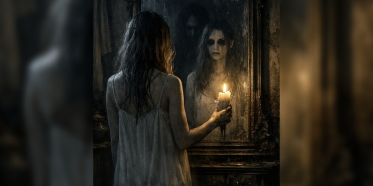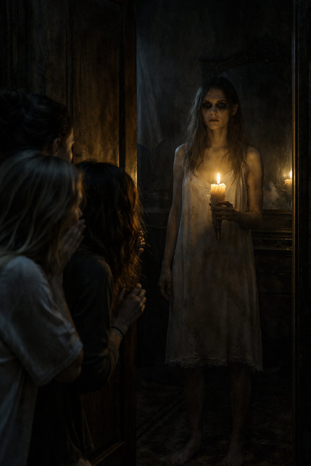 No era un juego popular. Se hablaba de él en voz baja, casi como una advertencia. La tradición indicaba que, exactamente a medianoche, alguien debía quedarse solo en una habitación completamente oscura, frente a un espejo antiguo, iluminado únicamente por una vela. El resto debía esperar afuera sin intervenir, sin golpear, sin llamar.