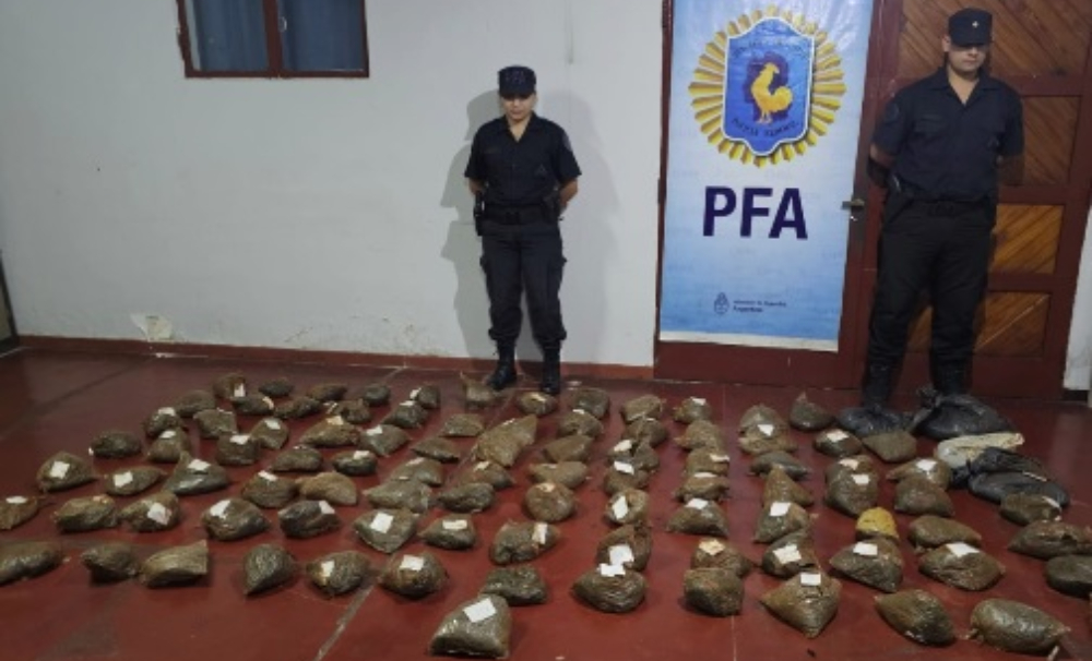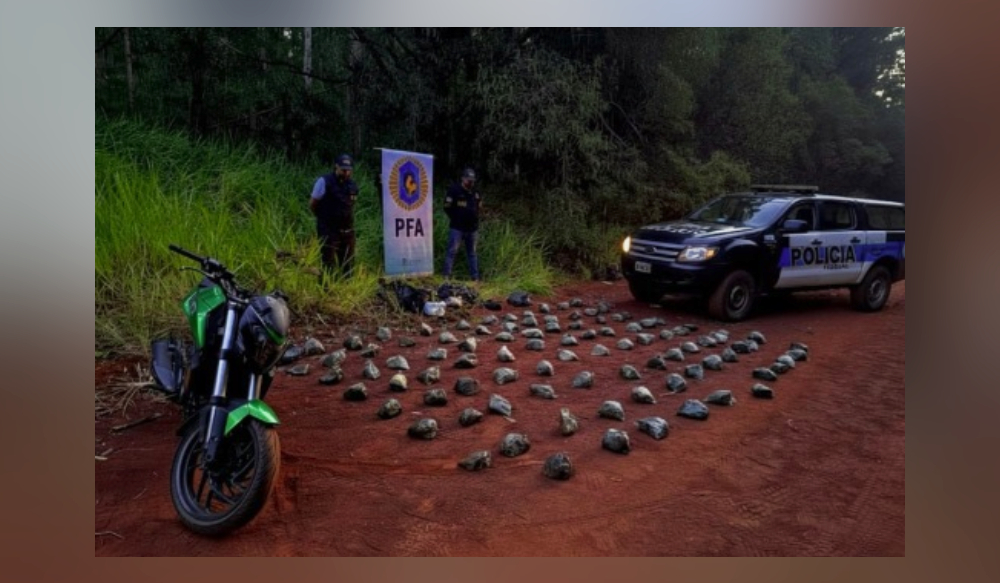 Un procedimiento preventivo llevado adelante por la Policía Federal Argentina en Candelaria permitió el secuestro de más de 71 kilogramos de marihuana tipo “cogollo” y la incautación de una motocicleta con pedido de secuestro por robo agravado.