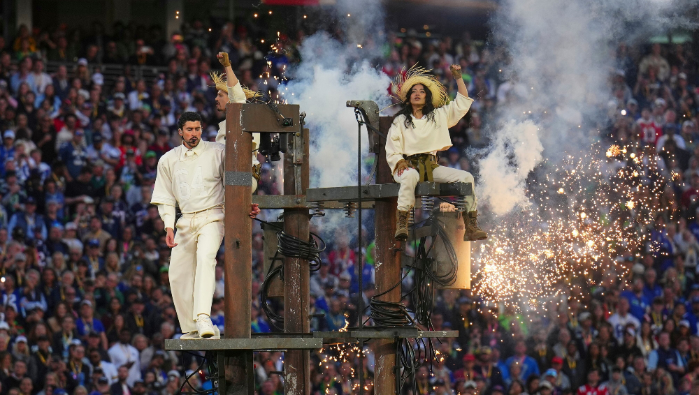Ante más de 75 mil personas en el estadio y una audiencia televisiva que superó los 120 millones de espectadores, el cantante desplegó una puesta con fuerte identidad boricua. El campo de juego se transformó en una escenografía caribeña con guiños a Puerto Rico, mientras sonaban hits como “Tití me preguntó”, “Yo perreo sola” y “Voy a llevarte pa PR”.