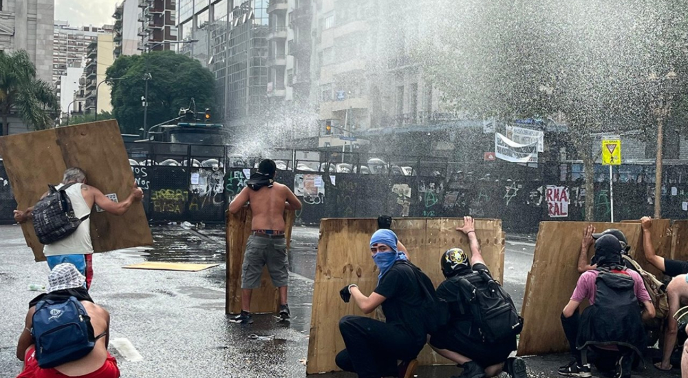 La movilización tenía lugar afuera del Congreso, mientras en el Senado se debatía la reforma laboral, un proyecto del Gobierno Nacional rechazado por el peronismo y por organizaciones sindicales como la CGT y las dos CTA.