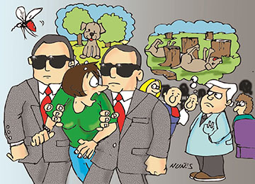 ¡La culpa es compartida entre los perros y los árboles!: los primeros porque se contagian de la enfermedad y los segundos porque son criaderos del mosquito. Razón por la cual solo existe una solución posible: hay que matar a todos los perros y cortar todos los árboles”. A estas afirmaciones se sumaron una serie de aplausos efusivos e incontrolables por parte de la profesora y otros apagados e inertes seguidos de risitas contenidas y miradas incrédulas por otra parte.