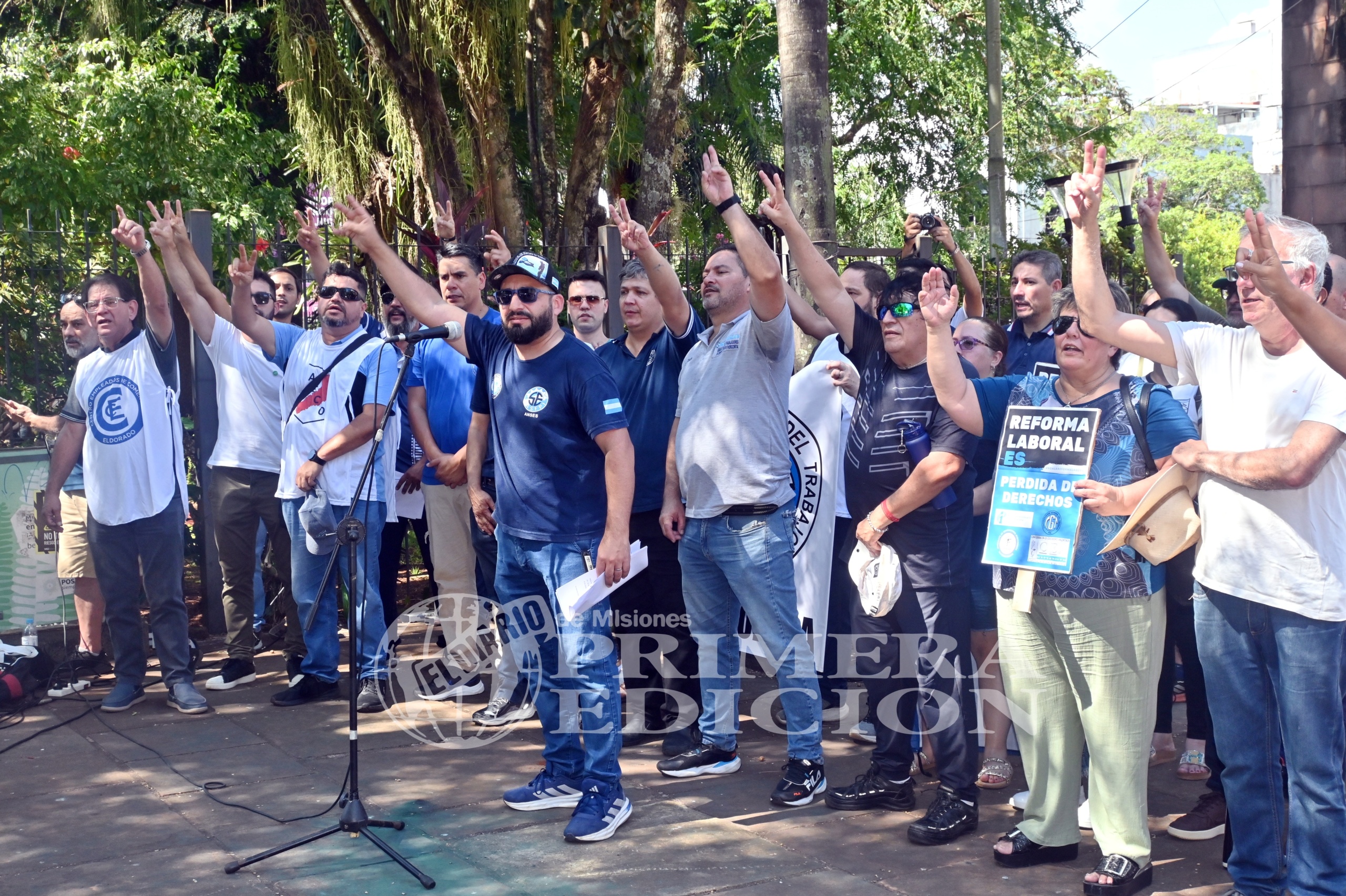 La CGT Regional Misiones realizó una concentración en la plaza 9 de de Julio de la ciudad, en consonancia con la movilización que se llevó a cabo en la Plaza de los Dos Congresos en Buenos Aires. El objetivo principal de la central obrera fue manifestar su rechazo tajante al tratamiento de la reforma laboral en el Senado de la Nación. Desde la organización sindical local remarcaron que la intención es “ejercer presión para que el proyecto legislativo no logre ser aprobado, ni en su tratamiento general ni en particular”.