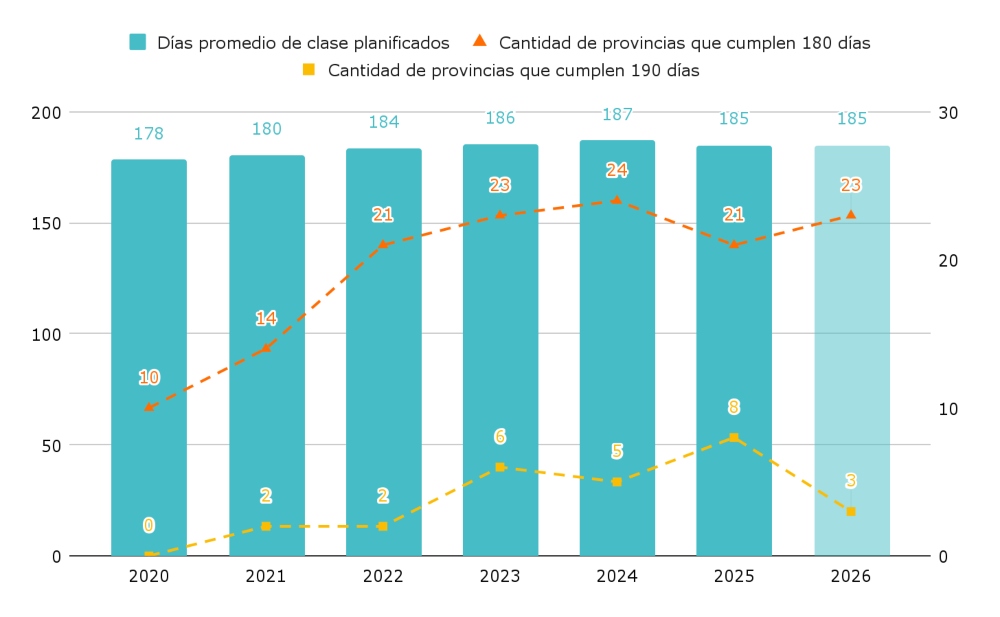 El informe de Argentinos por la Educación releva los días y horas de clase programados oficialmente por los ministerios provinciales y no su cumplimiento efectivo, que puede verse afectado por paros, problemas de infraestructura, ausencias docentes, problemas climáticos u otros factores.