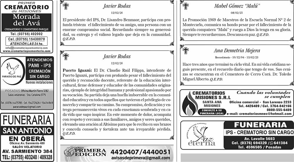 Fúnebres 13-02-2026