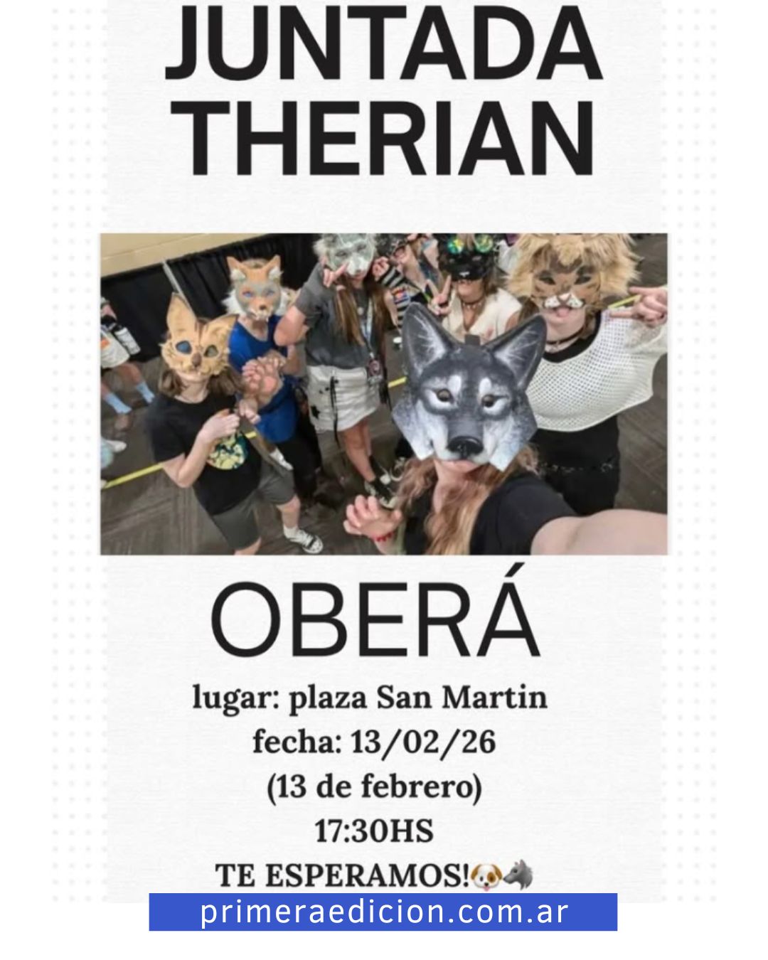 La comunidad Therian volverá a reunirse en Misiones. Esta vez, la convocatoria es en Oberá, donde se realizará una juntada en la plaza San Martín el próximo 13 de febrero a las 17.30. La invitación circula en redes sociales bajo el lema “Juntada Therian”, convocando a quienes se identifican con esta corriente y también a quienes deseen conocer más sobre el movimiento.
