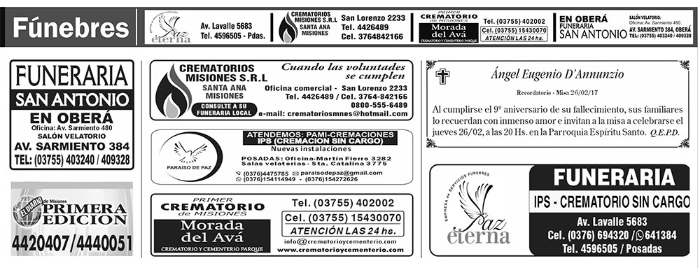 Fúnebres del domingo 22 de febrero de 2026
