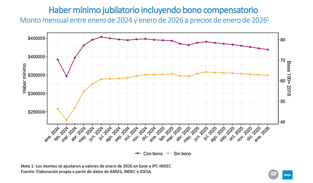 El informe de la UCA no habla de intenciones políticas. Describe un mecanismo: cuando el bono no se actualiza, el ajuste real recae sobre quienes cobran la mínima. Y en un esquema de superávit fiscal, congelar un componente no remunerativo es una forma directa de reducir el gasto previsional en términos reales sin modificar nominalmente el haber.