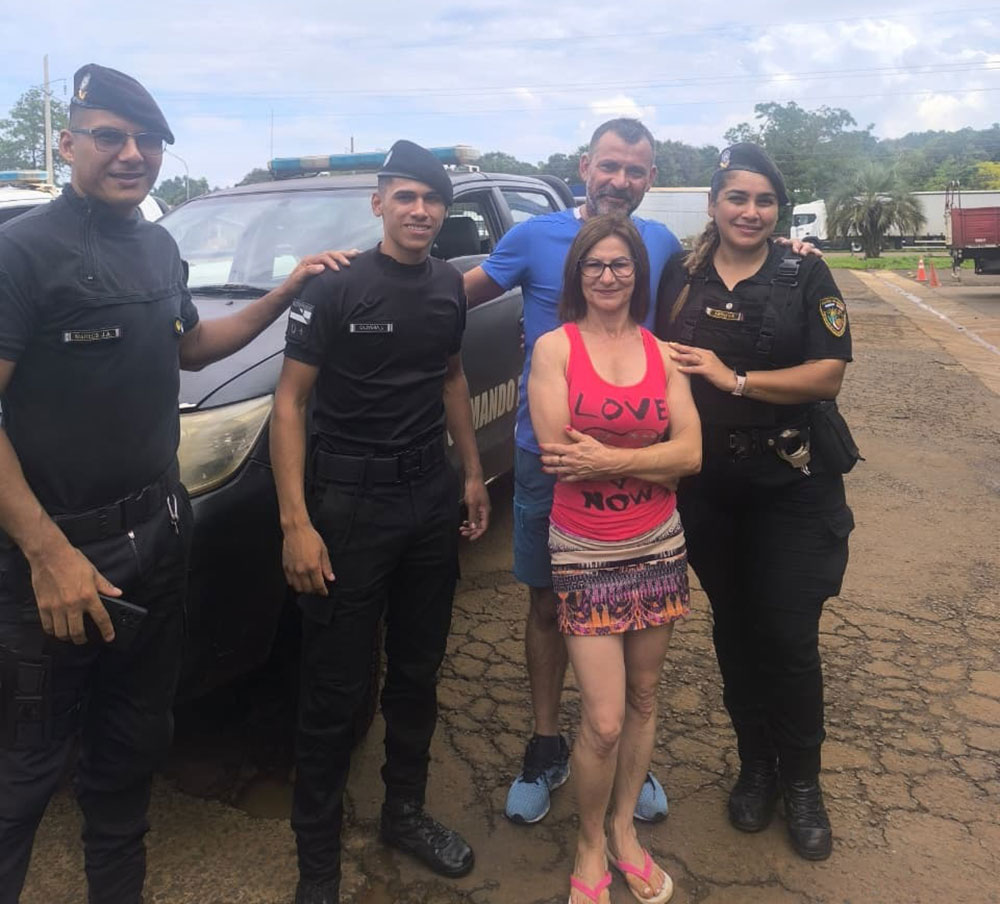 La mujer fue trasladada en el patrullero hasta la estación de servicio, donde se produjo el emotivo reencuentro. Ya más tranquilo y con el susto superado, Vilson pasó del llanto al agradecimiento infinito: no solo dio las gracias a los uniformados, sino que insistió en sacarse fotos con el personal del Comando para documentar el “percance” de sus vacaciones en Argentina.