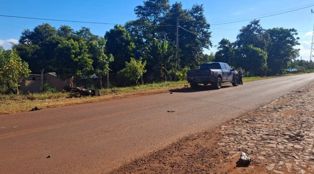 Este sábado, alrededor de las 16:00 horas, un trágico accidente ocurrió en Eldorado, a la altura del kilómetro 3, cuando una motocicleta Gilera 110 cc, conducida por Mario Leandro Torres, de 41 años, colisionó con una camioneta Ford Ranger conducida por Edgar Enrique M., de 51 años, quien resultó ileso.