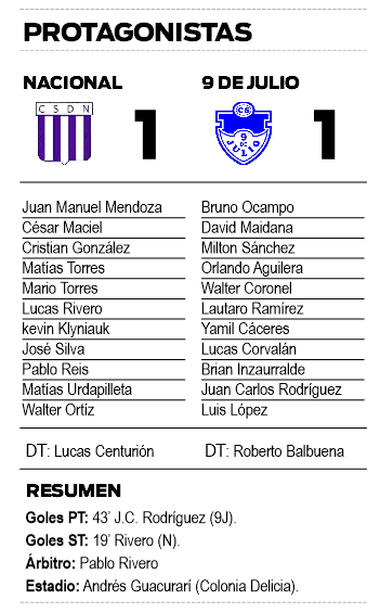En la primera mitad hubo un dominio sostenido del Nacio, pero los dirigidos por Balbuena pegaron primero. El capitán y emblema Juan Carlos Rodríguez aprovechó un rebote y anotó el 1-0.