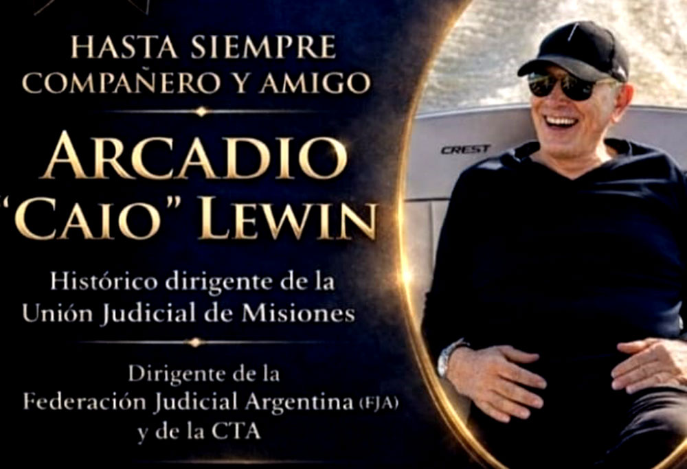Hay hombres que se vuelven inseparables de las siglas que representan. En Misiones, durante más de veinte años, decir Unión Judicial era decir Arcadio “Caio” Lewin. Su fallecimiento, confirmado este sábado por la propia organización gremial, marca el cierre de un capítulo central en la historia de los trabajadores de los tribunales provinciales.