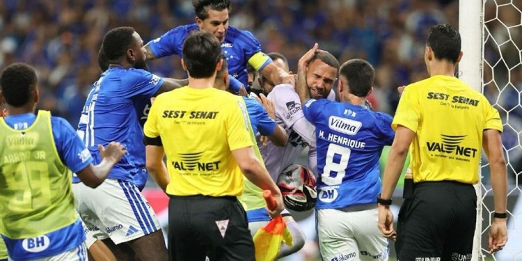 Según el informe del árbitro Matheus Candançan -quien tuvo que pedir protección policial para salir del campo-, la chispa se encendió entre el arquero Everson (Atlético) y el volante Christian (Cruzeiro). El guardameta derribó a su rival y le asestó un rodillazo en el rostro, mientras que el mediocampista respondió con un impacto de espinilla en la cabeza del portero.