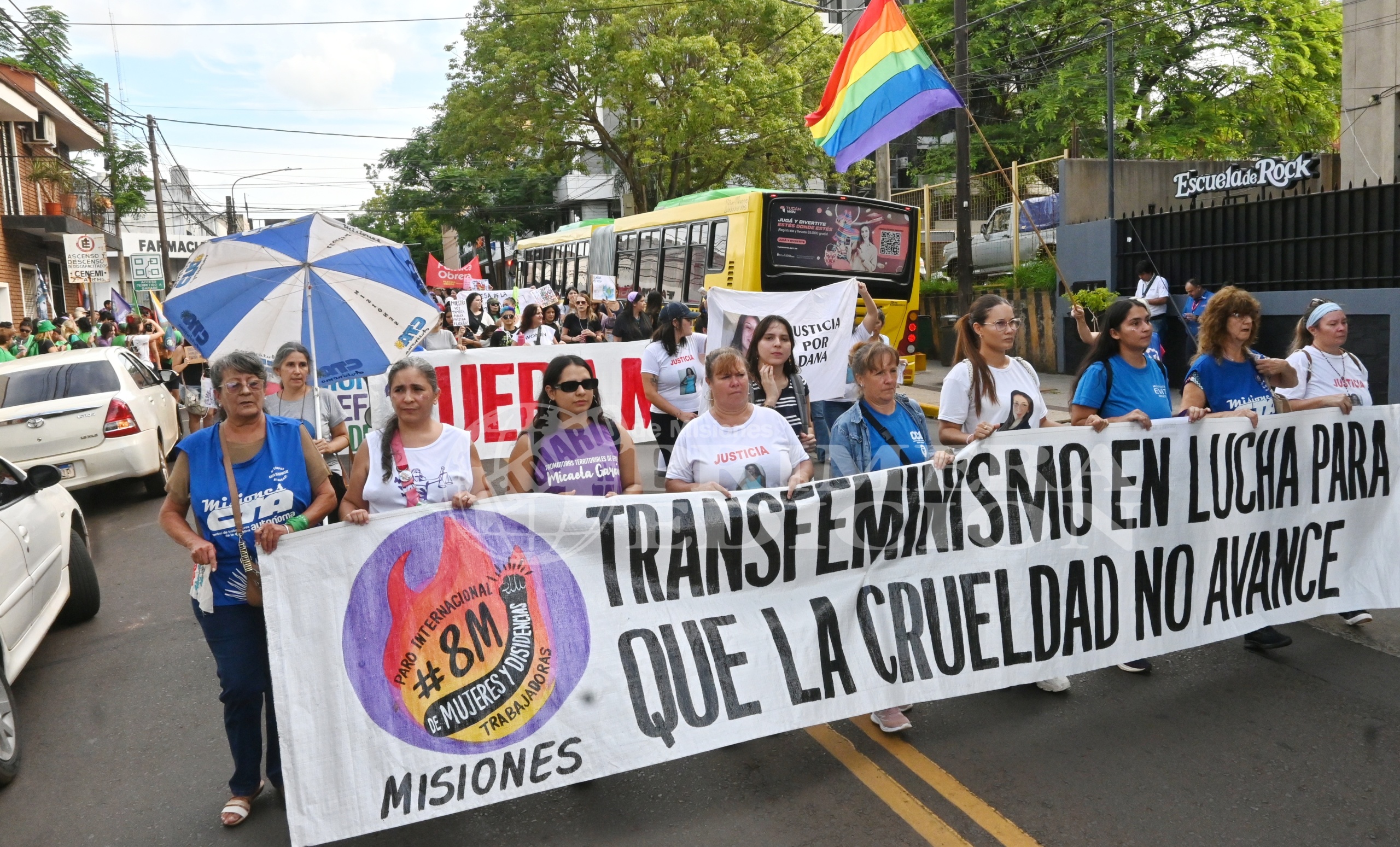 La convocatoria nacional a la movilización por el Día Internacional de la Mujer Trabajadora, que este año se programó un día más tarde, se nutrió hoy en Posadas de manifestantes de todas las edades, que llegaron con pancartas y banderas a la concentración, pactada para las 16.