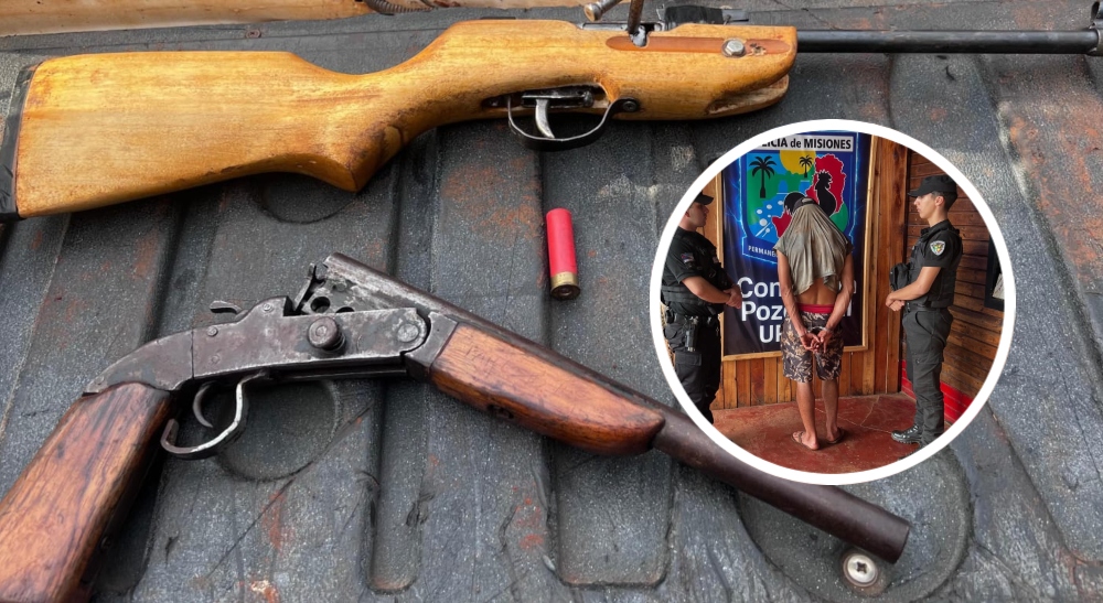 Durante la intervención, además, los policías secuestraron una escopeta aparentemente calibre 28 y un rifle aparentemente calibre 22, ambos sin marcas ni numeración visibles, que se encontraban dentro de la vivienda.