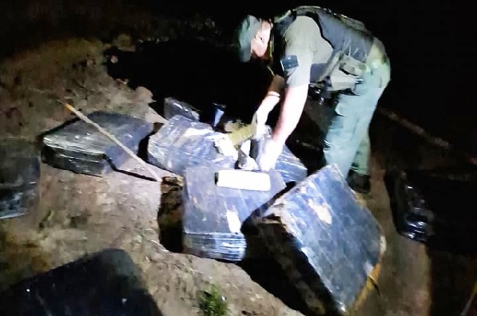 Ante esa situación, los uniformados rastrillaron la zona y divisaron nueve bultos embalados en cinta. En presencia de testigos, los gendarmes detectaron que se trataba de 379 paquetes rectangulares, que sometidos a la prueba de campo Narcotest arrojaron resultado para marihuana, con un peso total de 297 kilos 600 gramos.