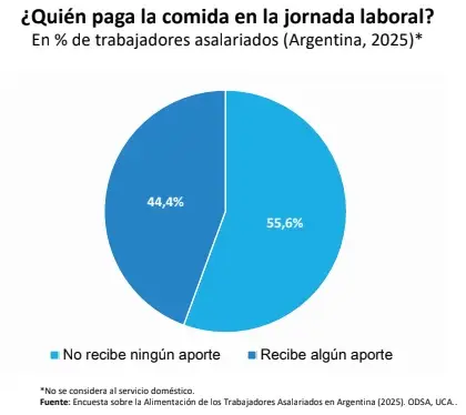 A esto se suma que más de la mitad de los trabajadores no recibe ningún tipo de ayuda de su empleador para cubrir los gastos de alimentación. Según el estudio, el 55,6% debe afrontar ese costo únicamente con su salario.