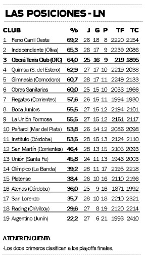 El “Celeste” llega tras la victoria por 73 a 62 ante San Martín de Corrientes en el Luis Augusto Derna, con lo que alcanzó un récord de 16 victorias y 9 derrotas que le permiten ubicarse en la tercera posición de la tabla de la LNB, apenas por debajo del líder Ferro Carril Oeste y su escolta, Independiente de Oliva.